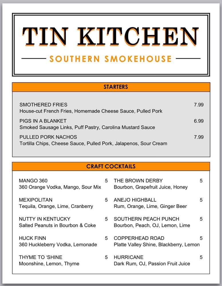 Tin Kitchen Menu (Update 2025)
